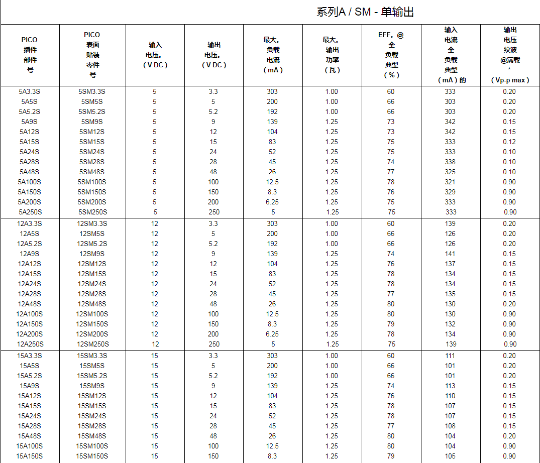 英國PICO電壓摸塊1.25W高可靠的性和超中型薄型DC-DC轉變成器,