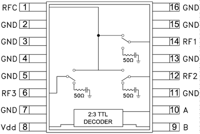 HMC245AQS16和HMC245AQS16E均為低成本反射式SP3T開關,采用16引腳QSOP表貼封裝。 該開關頻率范圍為DC至3.5 GHz,提供30至40 dB隔離和0.7 dB的低插入損耗。立維創展 該開關上集成了2:3 TTL/CMOS兼容解碼器,僅需兩條控制線和單個+5V偏置即可選擇每個路徑,從而可取代GaAs SP3T開關通常所需的6條控制線。若您有任意提出問題,請搞好關系咱們立維創展,咱們會盡極大奮力為您安全服務。