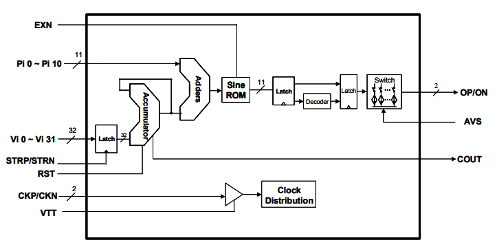 ds855是高速直接數字頻率合成器(DDS)與一個32位頻率調諧分辨率,11位相位調制輸入和11位的幅度分辨率。第一奈奎斯特帶中的正弦波可以產生到接近1.2 GHz(在2.5GHz時鐘速率)。初始相位可以重置為零度的正弦波開始。該芯片有一對互補輸出50Ω后端。輸出波形的頻率可由三十二個頻率控制位VIIO 0~VIY31控制。輸出波形的相位可以由11位PI00~PIY10相位調制輸入進行調制。的ds855接受互補時鐘輸入或單端時鐘輸入的特點50?片回到終端用戶定義的閾值。頻率分辨率位接受TTL或CMOS輸入電平。只需要一個5V的電源。